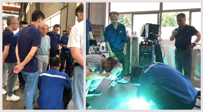 為了給協(xié)普團隊更貼合實際的培訓指導,王教授沒有過多地在焊接專業(yè)深度上給予解說,而是直奔主題,結合協(xié)普技術部和車間鉚焊班師傅們提出的18項實際工作問題,針對性地就實際設計工藝和焊接手法等一一做了詳細而生動的解答和演示。