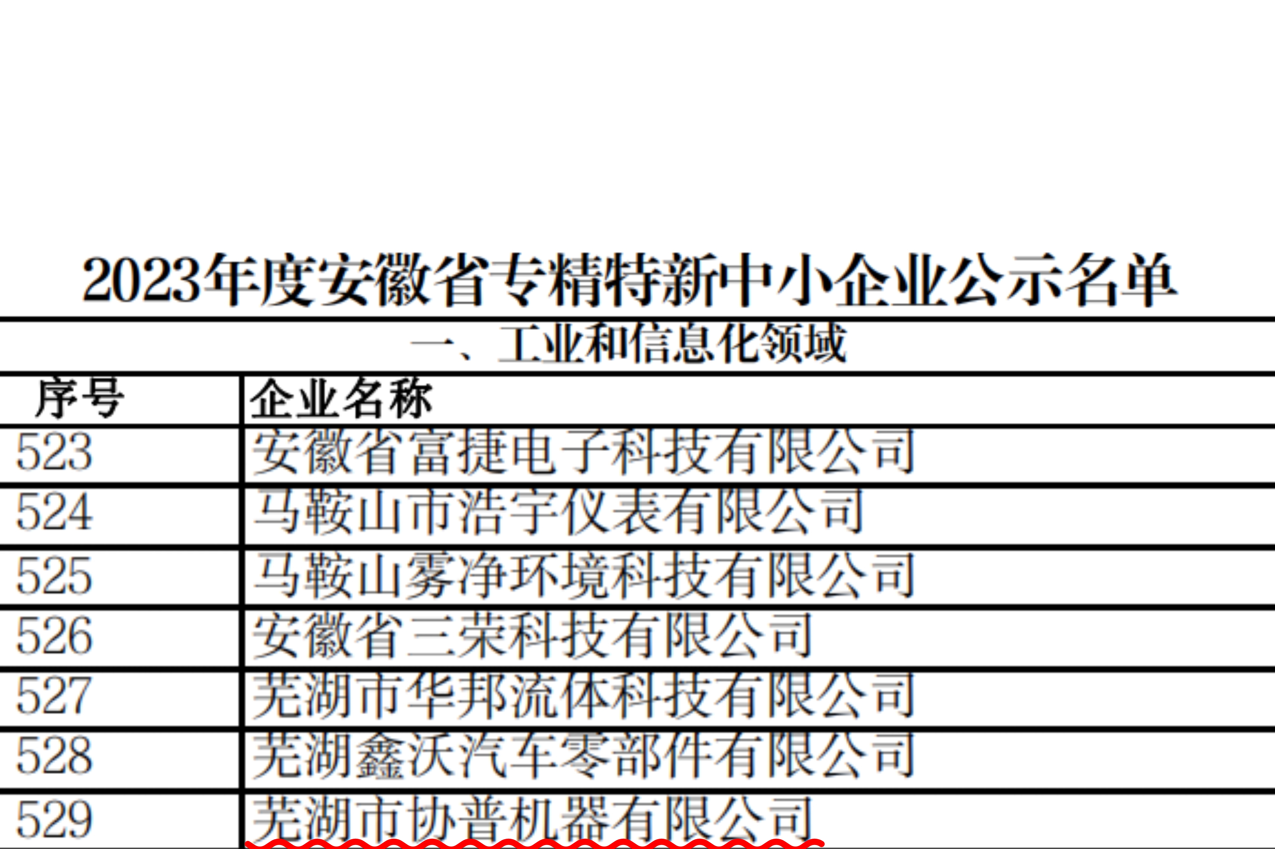 關(guān)于2023年度安徽省“專精特新”中小企業(yè)的名單,